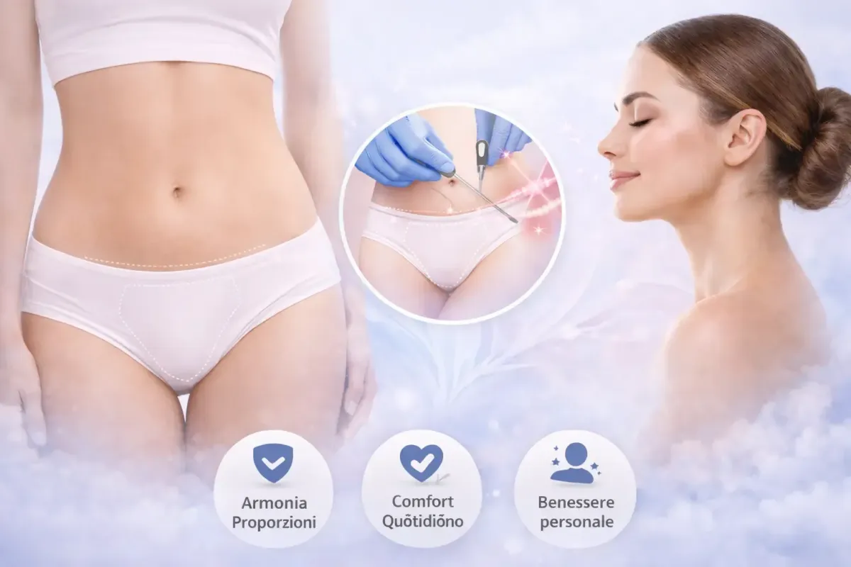 L’intervento permette di ridurre e rimodellare i tessuti in eccesso, migliorando comfort, igiene ed equilibrio estetico.