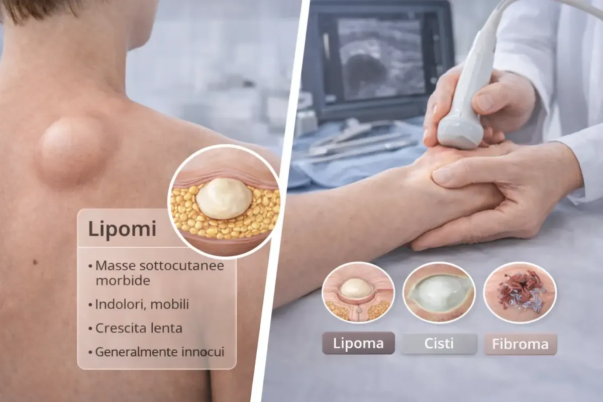 I lipomi sono accumuli benigni di tessuto adiposo che si sviluppano nel sottocute e possono comparire in diverse aree del corpo.