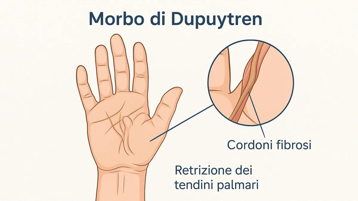 Si tratta di una patologia fibrotica che provoca la retrazione progressiva dei tendini palmari, determinando la flessione permanente delle dita.
