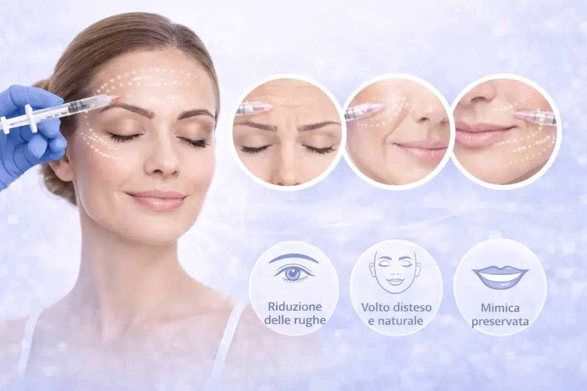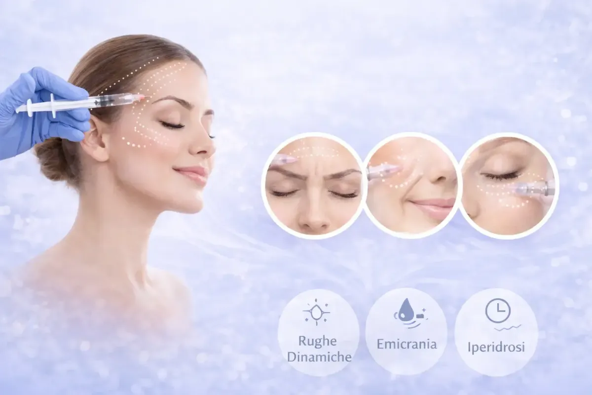 La tossina botulinica è un trattamento molto efficace per attenuare le rughe dinamiche del viso, cioè quelle che si formano durante le espressioni facciali, come le rughe della fronte, del contorno occhi e della glabella.